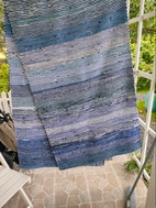 Erittäin siisti räsymatto,Sini/harmaa/valkoinen.Aika vähän käytetty.Maton pituus 290cm ja leveys 86 cm.