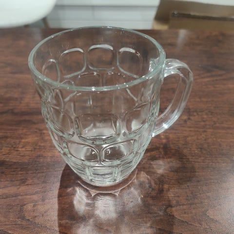 Uuden veroinen lasituoppi tinakannella. Lasissa purjeveneen kuva. Koiratalous.