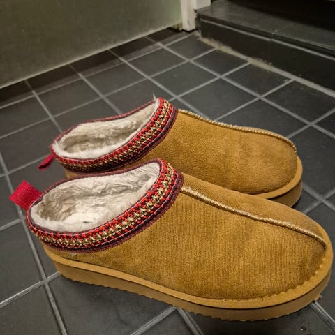 Kumiset huumoritohvelit. Leveä lesti, yllättävän hyvät jalassa. Vain sovitettu jalkaan.