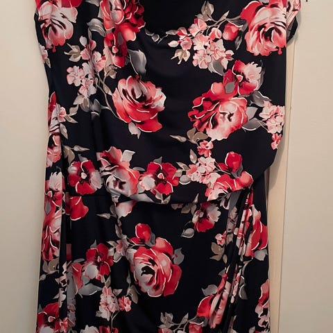 Allison mekko - tummansinistä ja valkoista, mukavaa miellyttävää joustavaa kangasta ja silittämättä siisti. Mekko on erittäin hyväkuntoinen kuin uusi koska muutaman kerran käytetty. Mekon pituus: olka- helmamitta noin 110 cm.