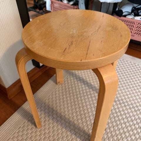 Vanha jakkara. Tuskin käytetty navetassa, mutta ehkä pihahommissa