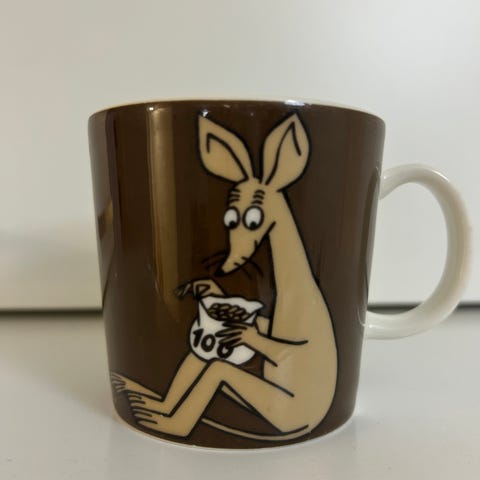 Myydään erittäin hyväkuntoinen ruskea Nipsu-muumimuki. Ei ole juuri ollut käytössä.