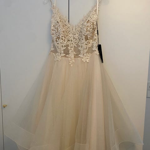 Mekolla on tanssittu muutaman kerran mutta on silti todella hyvässä kunnossa. Mekossa on taskut ja kiinnitys selässä olevalla vetoketjulla.