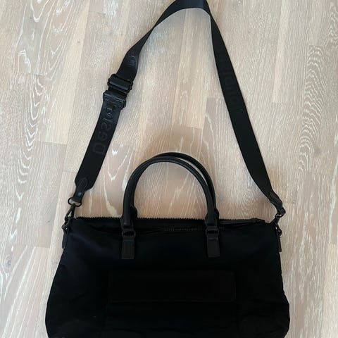 Desigual kangaslaukku. Neljä vetoketjutaskua (3 ulkopuolella ja yksi sisäpuolella) ja lisäksi laukun sisäpuolella kaksi erillistä taskua ilman vetoketjua. Uudenveroinen. Mitat näkyy kuvissa. Noudettavissa Laaksolahdesta tai postitus.