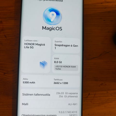 Honor magic 6 lite.Sisältää laturin Puhelimessa on vaurioita, mutta ne eivät häiritse käyttöä. Tuskin huomaa.