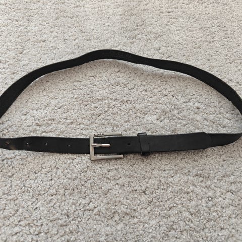 Paristi käytetty musta vyö, jossa bling bling- solki ja pituudessa koristelut myös. Kok.pituus 115cm, lev. 1,7cm.