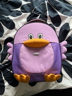 Lasten söpö lintumatkalaukku. Mahtuu sopivasti pienen matkaajan viikonloppu tai vähän pidemmänkin matkan tavarat. Ostettu käytettynä, ollut vähällä käytöllä ja pysynyt samassa kunnossa. Pohjassa hieman kangas kulunut ja kahvassa pieni tahra. Huomioitu hinnassa.