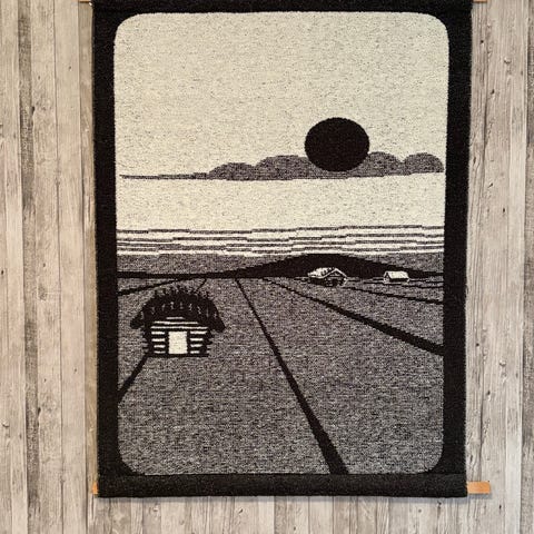 Myydään Hanhisalon kutomon seinävaate Lakeuden portti. Mukana puupitimet, jolla voi seinävaatteen ripustaa seinälle. Leveys 81 cm ja korkeus 115 cm. Hinta 10€.