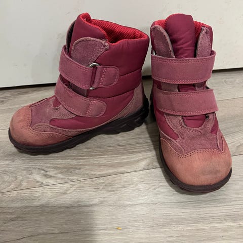 Adidas goretex vk-kengät kokoa 25. Kengän kärjissä suurimmat moitteet, kso. viimeinen kuva. Pinta hiukan kärsinyt ja kärjen kumi "irvistää " oikeassa kengässä hiukan enemmän