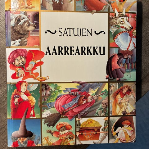 Satujen Aarrearkku ( 1994 ) Kovakantinen satukirja on hyväkuntoinen ja siisti. Kirjassa on 400 sivua, Iso teksti ja hyvät kuvat. Sis. mm. klassikko sadut : Hannu ja Kerttu, Saapasjalkakissa, Prinsessa ja herne, Kaunotar ja hirviö, Punahilkka, Seitsemän peninkulman saappaat, Aladdin ja taikalamppu, Tuhkimo, Kultakulti, Pieni tulitikkutyttö.