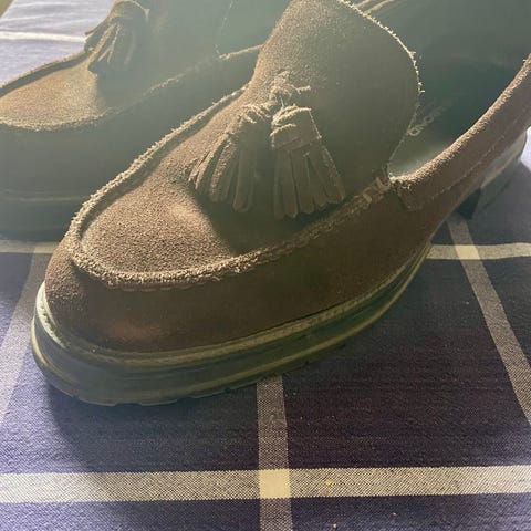 Kuvien mukaiset vain yksittäisen kerran jaloissa olleet ruskeat mokkanahkaiset kävelykengät kokoa 40. Soljissa joustimet, eli ovat vähän säädettävissä jalan rintavuuden mukaan sekä saa sujautettua jalkoihin suoraan. Cap toe-yksityiskohdat ja nahkavuori. Lesti sopii myös naisen jalkaan.