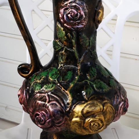 Käsin maalattu, keraaminen kukkamaljakko/ lattiamaljakko.
