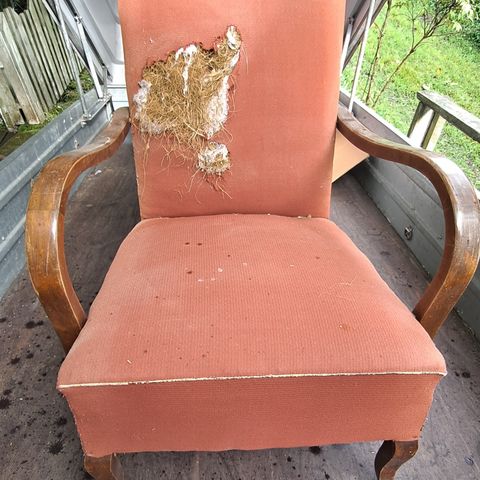Kuvan mukainen nojatuoli jonka saa kasaan ja eri asentoihin. Jalkatuen saa irti.
