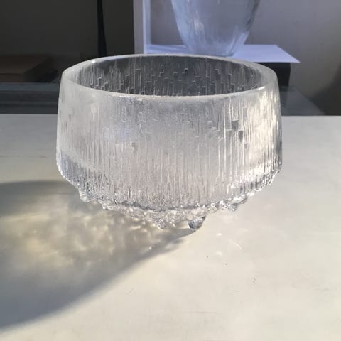 Tapio Wirkkalan suunnittelema lasikulho. Hyväkuntoinen. Kirkas, ei tarraa. Kork.110mm, halkaisija 150mm, vetoisuus 1,2litr.