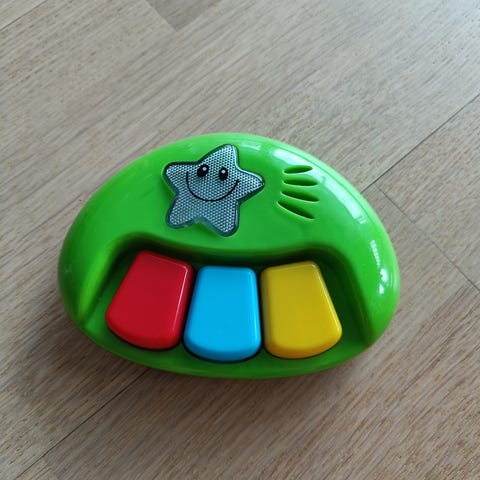 Myydään lapselle / vauvalle sopiva ensimmäinen lelupiano. Kevyesti painamalla soittaa eri säveliä. Mitat 40 x 27 ja