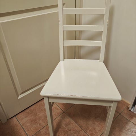Tuoleissa saattaa olla käytönjälkiä. Tuolit ovat tulleet päiväkodista ja ovat täällä uudelleen kunnostettuja.