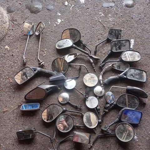 Kolme erilaista mopon tai moottoripyörän peiliä. Kaikki vaseman puolen.