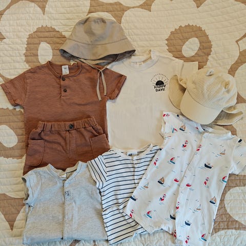 Myydään kuvassa olevat 10 vaatekappaletta pakettina. Kaikki vaatteet ovat ehjät ja hyvässä kunnossa. Koko kaikissa vaatteissa 74-80.