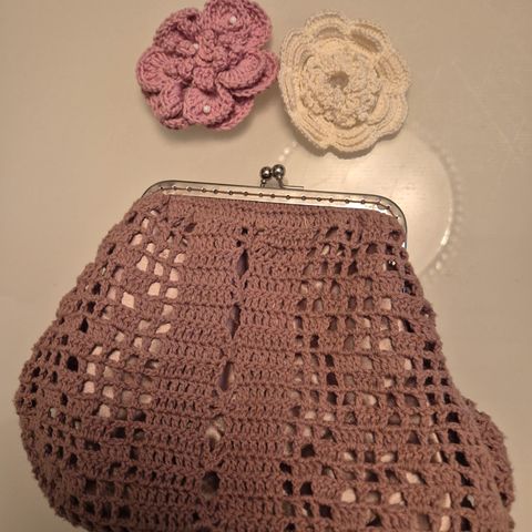 Virkattu Lisbeth Dahl pussukka, mitat noin 15x17 cm.