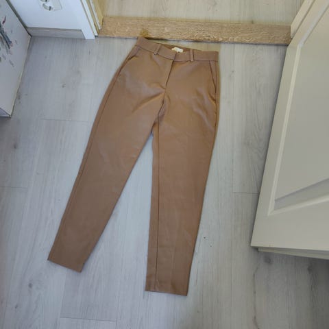 H&M siistit suorat beiget housut. Kooltaan 36/38 (alkuperäinen lappu leikattu irti). Tyylikkäät ja hyvässä kunnossa. Suora, hieman levenevät lahkeet. Takana taskut.
