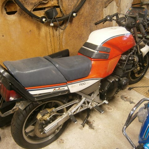 Suzuki GS 450 S sivuposki vasen. Uusi paketissaan.