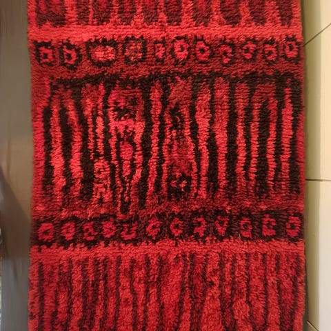 Tämä on kangaspuissa käsinkudottu ja käsinsolmittu ryijy. Pohja ja nukka on puhdasta uutta villaa. Hyvin kudottu käsityö. Ryijyssä ei ole hajuja ja nukka on hyvä.