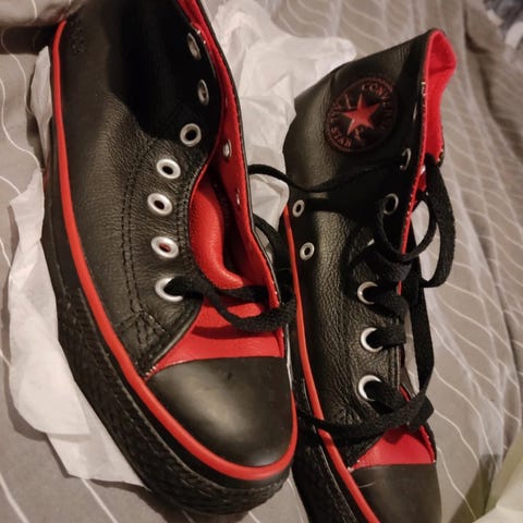 Muutamia kertoja käytössä olleet Converse kengät. Ovat lojuneet varastossa vuosia.