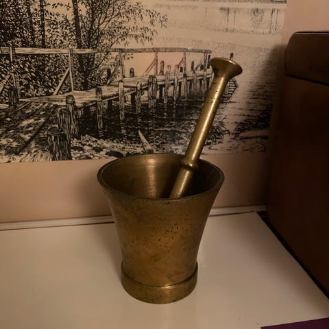 Vintage messinkimörssäri – apteekkitunnelmaa keittiöösi!