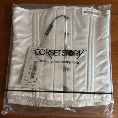 Tehokkaasti kehoa muokkaava Corset Storyn valmistama laadukas korsetti,hieman latex tuntuinen Cotton96%+Spandex4% ,3 tasoinen hakaskiinnitys,mitta rintojen alta 92,94,96 ei jousta paljoa!Sopii myös miehille erittäin hyvä tuki myös selkä/ryhti vaivoista kärsivälle.norm hinta n 140e