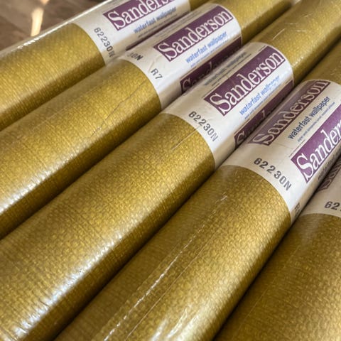 Cole & Son -valmistajan näyttävä, tyylikäs tapetti. Sivistyneisyyden henkeä pölyttömällä ja tilaa viemättömällä "kirjahyllyllä"...