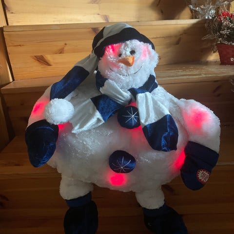 Kankainen lumiukko joulukalenteri. 24kpl kalenterin "luukkuja", eli taskuja. Kalenterin taskuihin voi laittaa jotain pientä ja jännää. Kalenterin voi käyttää uudelleen joka vuosi. Sisällä jonkinlainen vanu tms. ja on noin 1cm paksuinen. Voi käyttää halutessaan myös mattona.