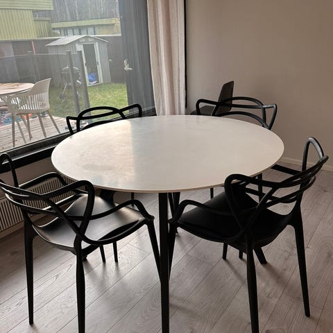 Käsintehty pöytä ja 4 tuolit. Hyvässä kunnossa. Nouto Vuosaaresta.