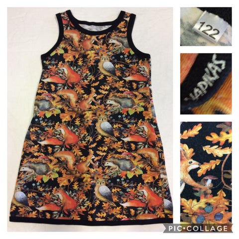 Carter´s tunika. Koko 6x, n.122. Kainalo-kainalo n.37cm, olka-helma n.48cm ja kainalo-hihansuu n.36cm. Yleisilme siisti, mutta haalistumaa + pesuhaitua on jo jonkin verran ja takana jälki.