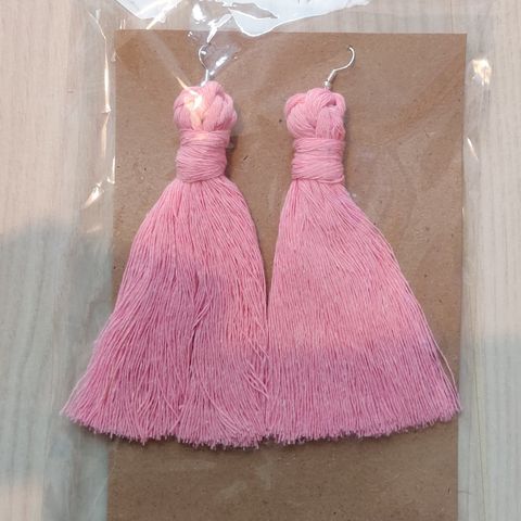 Myydään uudet ja käyttämättömät makramee tasseli korvakorut. Väri valkoinen. Korvakorun pituus noin 11 cm. Korvakorujen koukut nikkelittömiä. Korvakorut ovat pakattuna sellofaanipussiin.