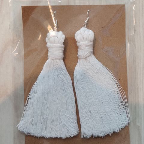 Myydään uudet ja käyttämättömät makramee tasseli korvakorut. Väri vaaleanpunainen. Korvakorun pituus noin 11 cm. Korvakorujen koukut nikkelittömiä. Korvakorut ovat pakattuna sellofaanipussiin.