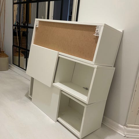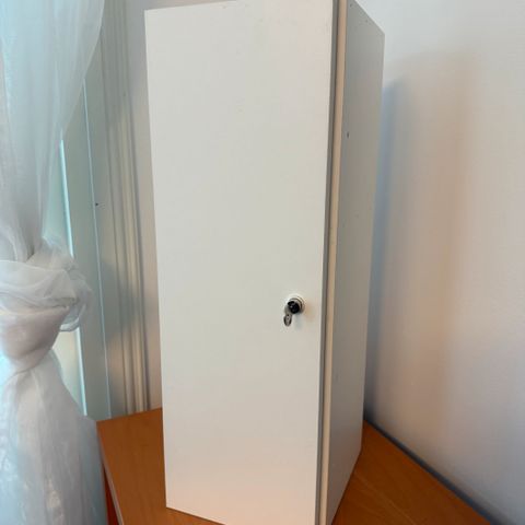 Siisti ovellinen seinäkaappi kahdella hyllyllä.