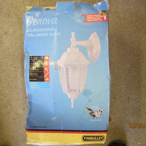 Posliinirunkoinen varastovalaisin. Ehjä ulkovalaisin. Halkaisija noin 15 cm. Hinta 20 euroa postitettuna.