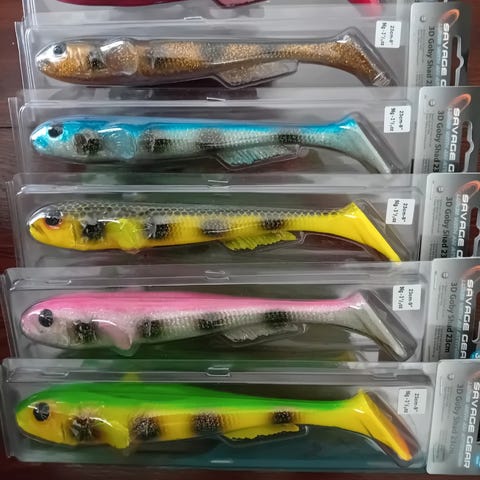 Kuusi käyttämätöntä Pig Shad Torunamenttia paketeissa. 5 kpl kultamustaa ja yksi haukiväreissä.