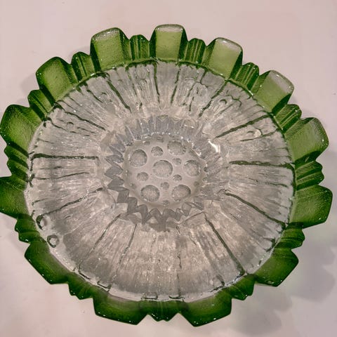 Tauno Wirkkalan Humppilan lasille suunnittelema vihreä Ulpukka vati.