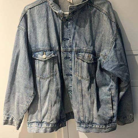 Hyväkuntoinen farkkutakki koko 36. Ehjä ja siisti. Over sized mallinen. Itse käytin 38 kokoisena.