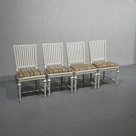 Kotimaisen Laitalan valmistama kustavilaistyylinen tuoli. Tuolin runko on valmistettu koivusta ja istuin on kangasverhoiltu.