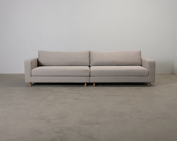 Tämä vasemmalle suunnattu moduuli on osa ylellistä ja mukavaa SofaCompanyn modulaarista Vincent-sohvamallistoa. Tämä moduuli on verhoiltu pehmeällä kangas-verhoilulla, jonka väri on kaunis beige. Se on kudottu 70 prosenttisesti kierrätetystä polyesteristä. Polyesteri on käytännöllinen huonekalukangas, sillä se on kestävää, valonkestävää ja helppohoitoista. Vincentin tyynyt kuuluvat valmistajan luokkaan "luxury comfort", mikä tarkoittaa, että HR-vaahtomuovityynyjen päällä on pehmeä kuitu- tai untuvakerros, joka lisää pehmeyttä ja mukavuutta. HR-vaahtomuovi ja nozag-jouset yhdessä tekevät tuotteesta sekä kestävän, että mukavan. Suunnittelija: Nikoline Tryde Hølund. Verhoilu: Anthracite Grey Steel.