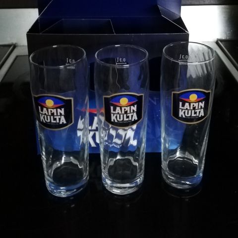 Lapin kulta -lasit. Laseja on annettu Hartwallin yhtiökokouksessa osakkeenomistajille 120-vuotisjuhlavuotena vuonna 1993. Siistit ja ehjät. Kultaukset hyvässä kunnossa. Yhteishinta molemmille.