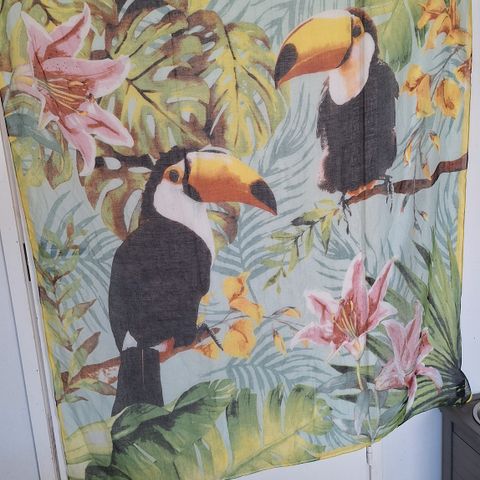 Ihanan pehmeä iso kaulahuivi. Materiaaleina viskoosi 50% ja villa 50%. Värejä vaikea nimetä, mutta sanoisin harmaa ja vaalea beige. Soikeat pallokuviot (isommat 3 cm ja pienemmät 1,5 cm).