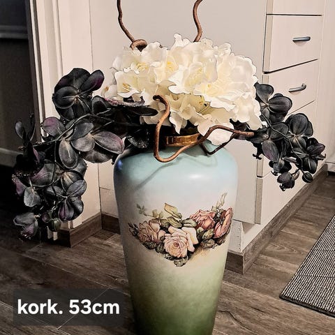 Koristeellinen kukkamaljakko, korkeus 60 cm, leveys 25 cm. Vain nouto