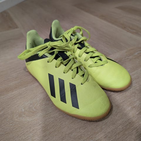 Adidaksen sisäpelikengät, koko 30. Käytössä olleet, mutta sitä ei huomas. Kunto siis moitteeton. Sisäpuolelle kirjoitettu tussilla nimi, se näkyy hennosti molemmissa kengissä.