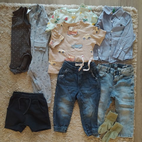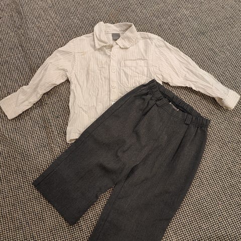 Myydään setti siistimpää / juhlallista vaatetta koossa 92. Name itin sininen kauluspaita kokoa 86, mutta saman kokoinen kuin Lindexin viiksipaita koko 92. Rusetti erillinen. Molemmat farkut kokoa 92, henkselit saa irti. Molemmissa housuissa kiristys vyötäröllä.