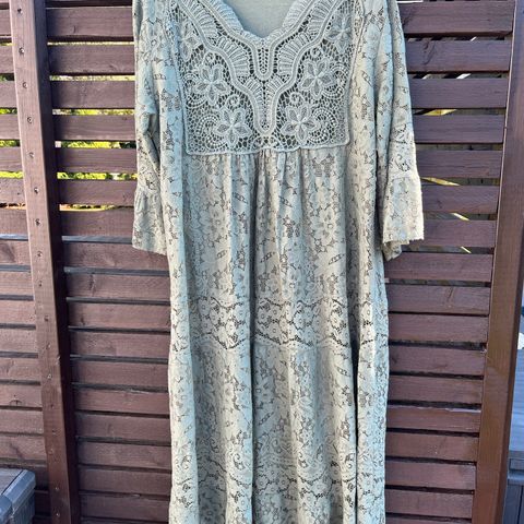 Myydään kaunis pitkä mekko, silkkiä 50% ja pitsiä = puuvillaa 50%.