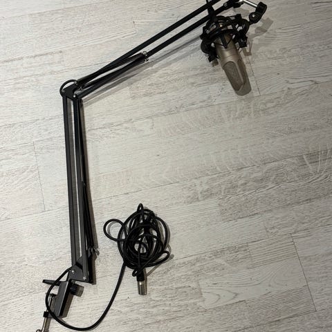 Turkoosi mikrofoniteline pöytäkiinnityksellä
