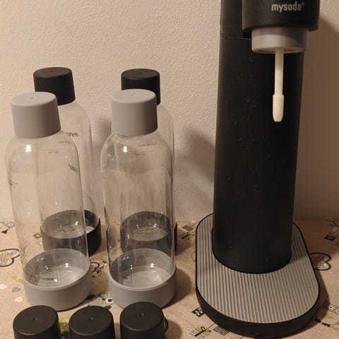 Pullojen päiväys näköjään vanhentunut joten myynnissä vain laite,pullot saa halutessaan mukaan